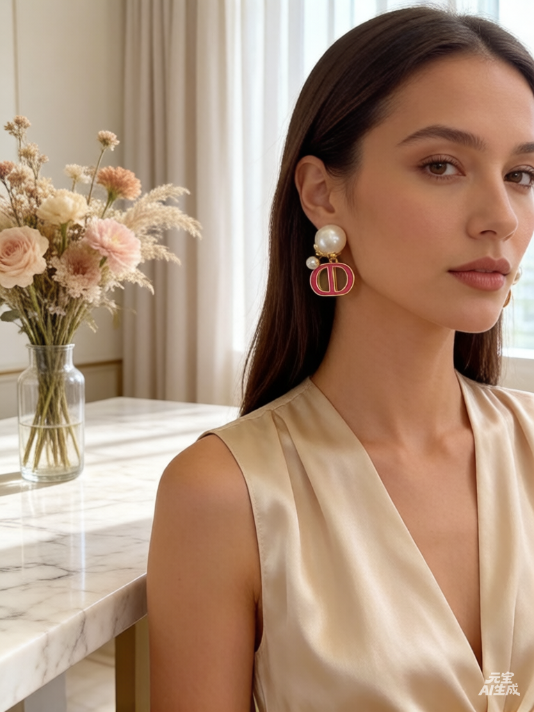 Dior Pearl Letter Necklace Bracelet